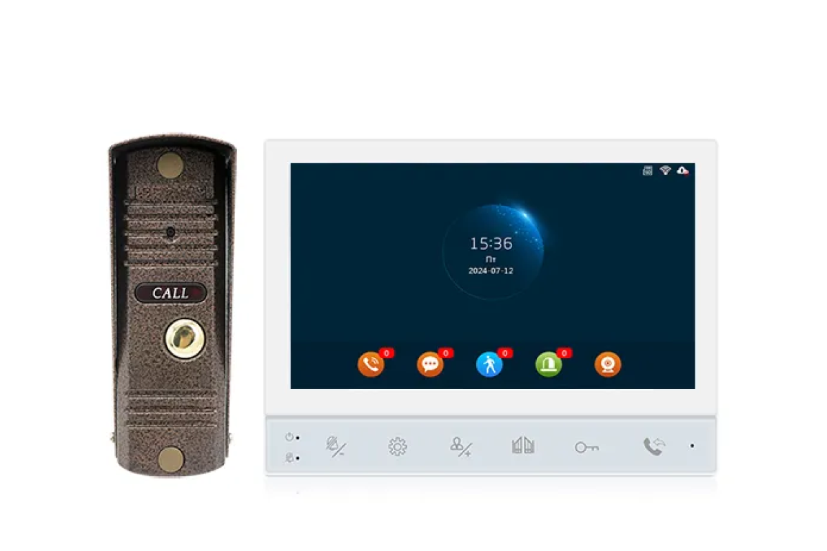 Комплект: видеодомофон FHD с Wifi и видеопанель FHD. Цветной домофон(AT-I-M741F/TW Black)FHD с TFT экраном(1024x600)7 дюймов. Детектор движения, запись и сенсорные кнопки управления. Подключение 2 вызывных панелей 1080P AHD/TVI/CVI или CVBS, 2 видеокамер 1080P AHD/TVI/CVI или CVBS, 2 датчиков тревоги, адресный интерком. Разговор по громкой связи. Соединение с вызывной панелью 4-проводное. Слот microSD до 128 Гб, питание~100-240В или DC12В, потребление 600мA, в режиме ожидания 250мA. Корпус белого цвета. Размеры 190x125x22мм. Подключение по WiFi или Ethernet RJ45. Приложение Smart Life. Цветная накладная видеопанель(AT-I-D01F(V2)Brown)коричневого цвета с FHD(1920x1080)матрицей. Угол обзора 120°. 4-х проводное подключение к домофону. Подключение всех типов электрозамков(NO/NC). Рабочая температура-40..+50°С. Питание от домофона DC12В. Защита: IP65. Размер 122*41*23