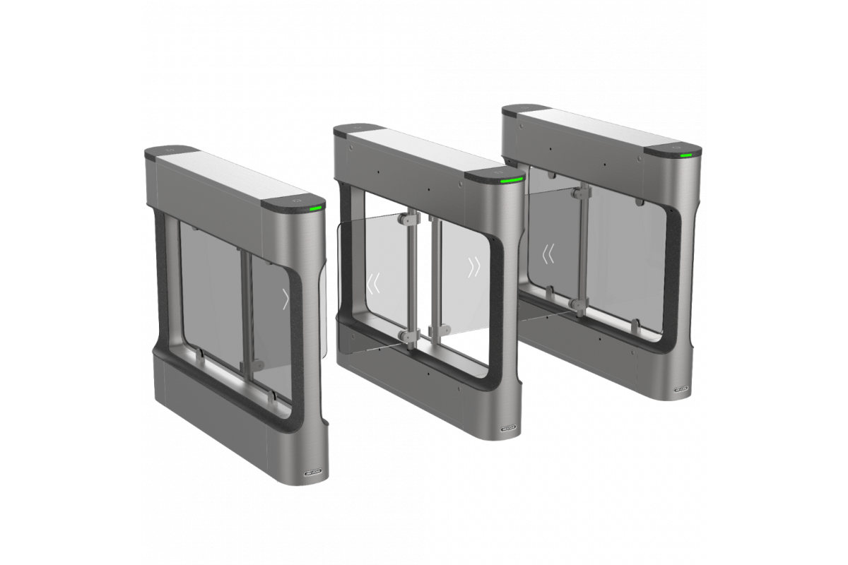 Ширина прохода составляет 650 мм, а часть проходной зоны располагается справа. Система оснащена 6 парами датчиков прохода, которые обеспечивают скорость прохода 20-60 чел/мин.