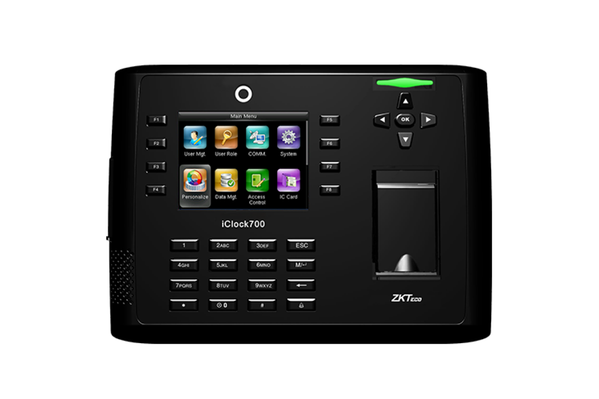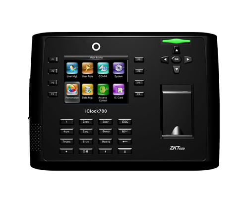 iClock700 - это биометрический терминал учета рабочего времени и контроля доступа от бренда ZKTeco. Терминал оснащен сенсором отпечатков пальцев с емкостью 8000 отпечатков и поддерживает использование ID-карт с емкостью 10 000 (опционально). Емкость событий составляет 200 000, а связь доступна через TCP/IP, RS232/485, USB-хост и Wiegand Out & In.