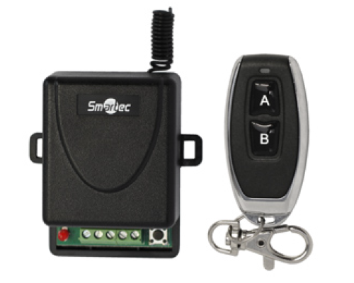Комплект управления по радиоканалу с динамическим кодом Smartec ST-EX101RF включает в себя приемник и брелок. Имеет память до 6 брелоков, реле НЗ/НР, триггерный и импульсный режимы, а также частоту 433 МГц. Работает при напряжении 12 В DC/ 24 В DC и потребляет 12 мА.