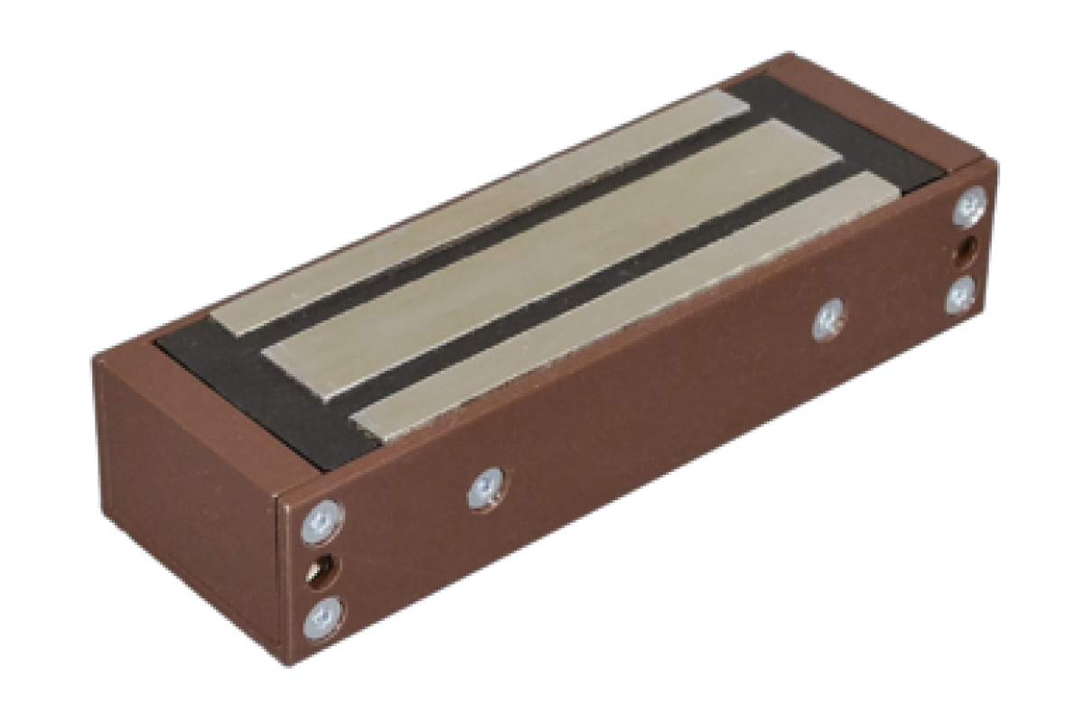 TS-ML400-RU1(коричневый)Замок электромагнитный, 400 кг, 12В/400мА пост.тока, встроенная цепь размагничивания. В комплекте крепежный уголок