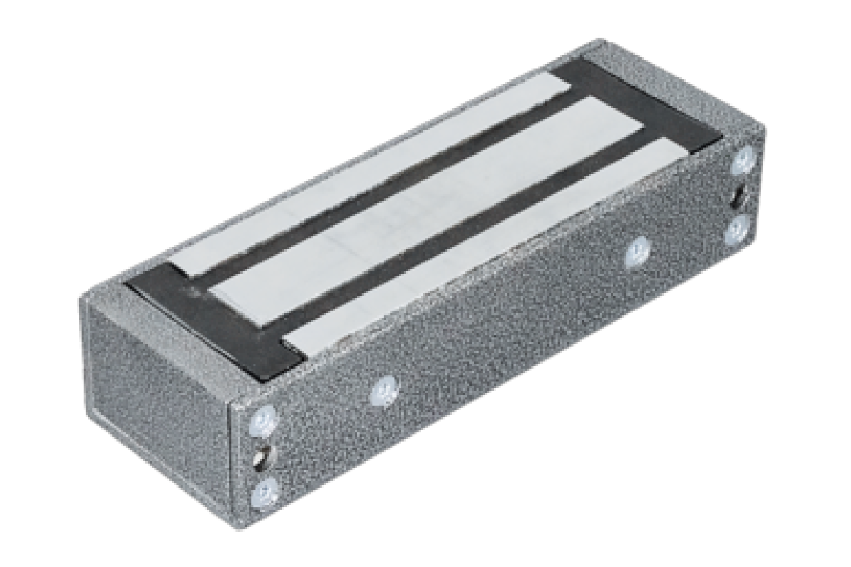 TS-ML400-RU1(серебряный антик)Замок электромагнитный, 400 кг, 12В/400мА пост.тока, встроенная цепь размагничивания. В комплекте крепежный уголок